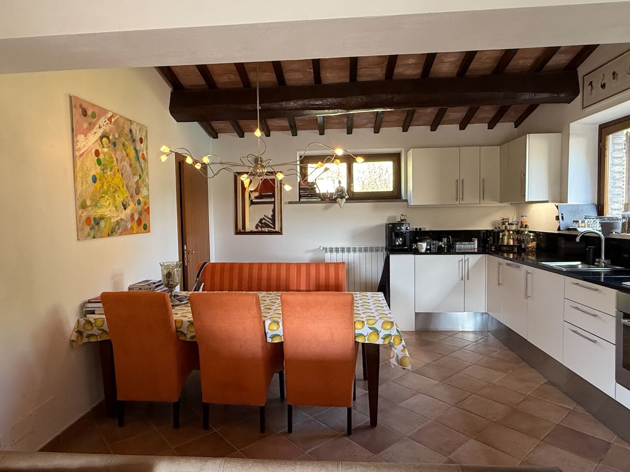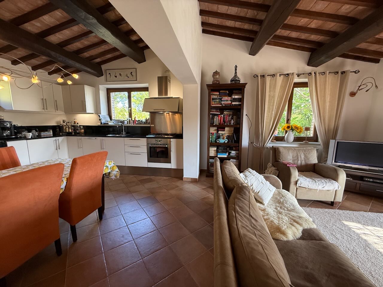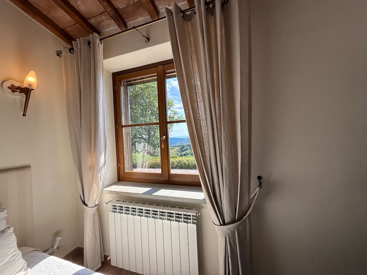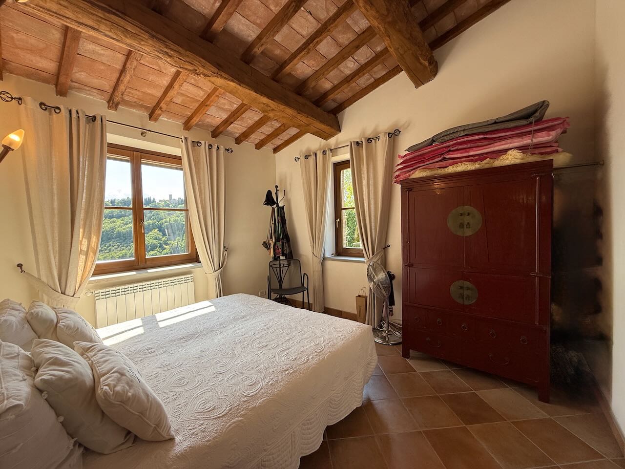 Leuke volledig ingerichte woning op de begane grond, in de heuvels tussen Perugia (20 minuten) en Assisi, met een overweldigend uitzicht op een kasteeltje van meer dan 1000 jaar oud. Het complex met 5 woningen waarin deze woning in Umbrische stijl deel van uit maakt is gebouwd rond 2004, en heeft een gemeenschappelijk zwembad en parkeerplaatsen. Rondom de natuurstenen woning liggen 3 terrassen waar je kan genieten van het schitterende uitzicht, en een tuin met olijfbomen. Binnen is er een ruime open space zitkamer met open haard, een hoog plafond met houten balken, een open keuken en eethoek, en verder een halletje, 2 slaapkamers en 2 badkamers en wat bergingen. Alles is in perfecte staat en volledig uitgerust (ook airco) , je hoeft alleen je koffer mee te nemen! Een ideale plek voor (lange) vakanties, rustig, maar niet geïsoleerd! |