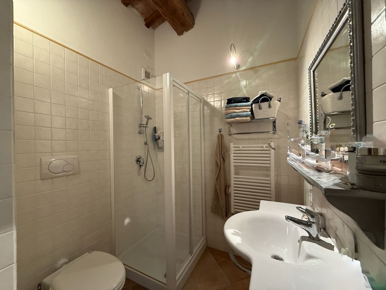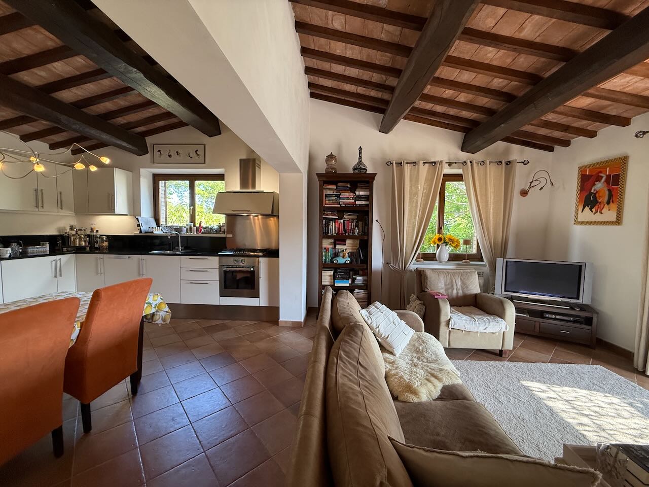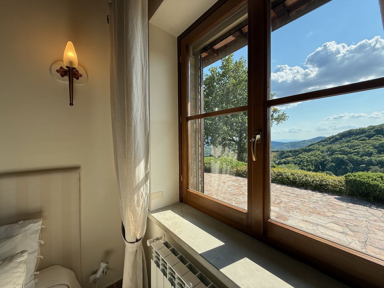 Leuke volledig ingerichte woning op de begane grond, in de heuvels tussen Perugia (20 minuten) en Assisi, met een overweldigend uitzicht op een kasteeltje van meer dan 1000 jaar oud. Het complex met 5 woningen waarin deze woning in Umbrische stijl deel van uit maakt is gebouwd rond 2004, en heeft een gemeenschappelijk zwembad en parkeerplaatsen. Rondom de natuurstenen woning liggen 3 terrassen waar je kan genieten van het schitterende uitzicht, en een tuin met olijfbomen. Binnen is er een ruime open space zitkamer met open haard, een hoog plafond met houten balken, een open keuken en eethoek, en verder een halletje, 2 slaapkamers en 2 badkamers en wat bergingen. Alles is in perfecte staat en volledig uitgerust (ook airco) , je hoeft alleen je koffer mee te nemen! Een ideale plek voor (lange) vakanties, rustig, maar niet geïsoleerd! |