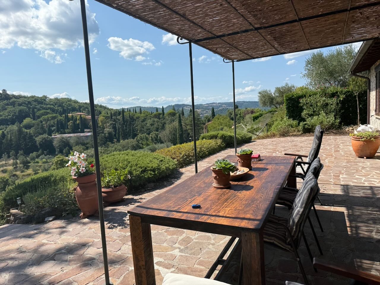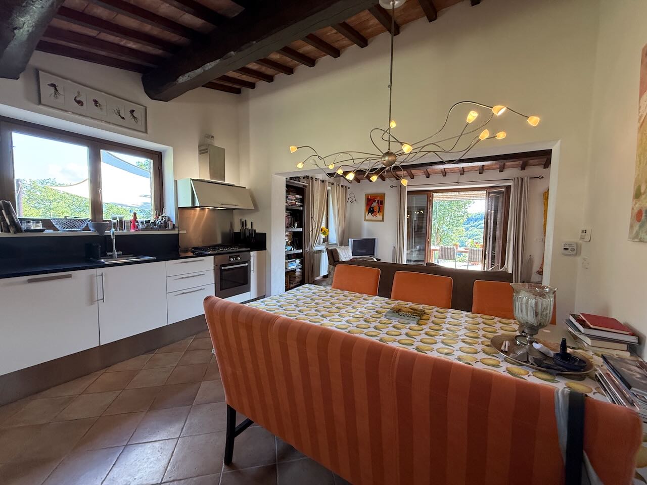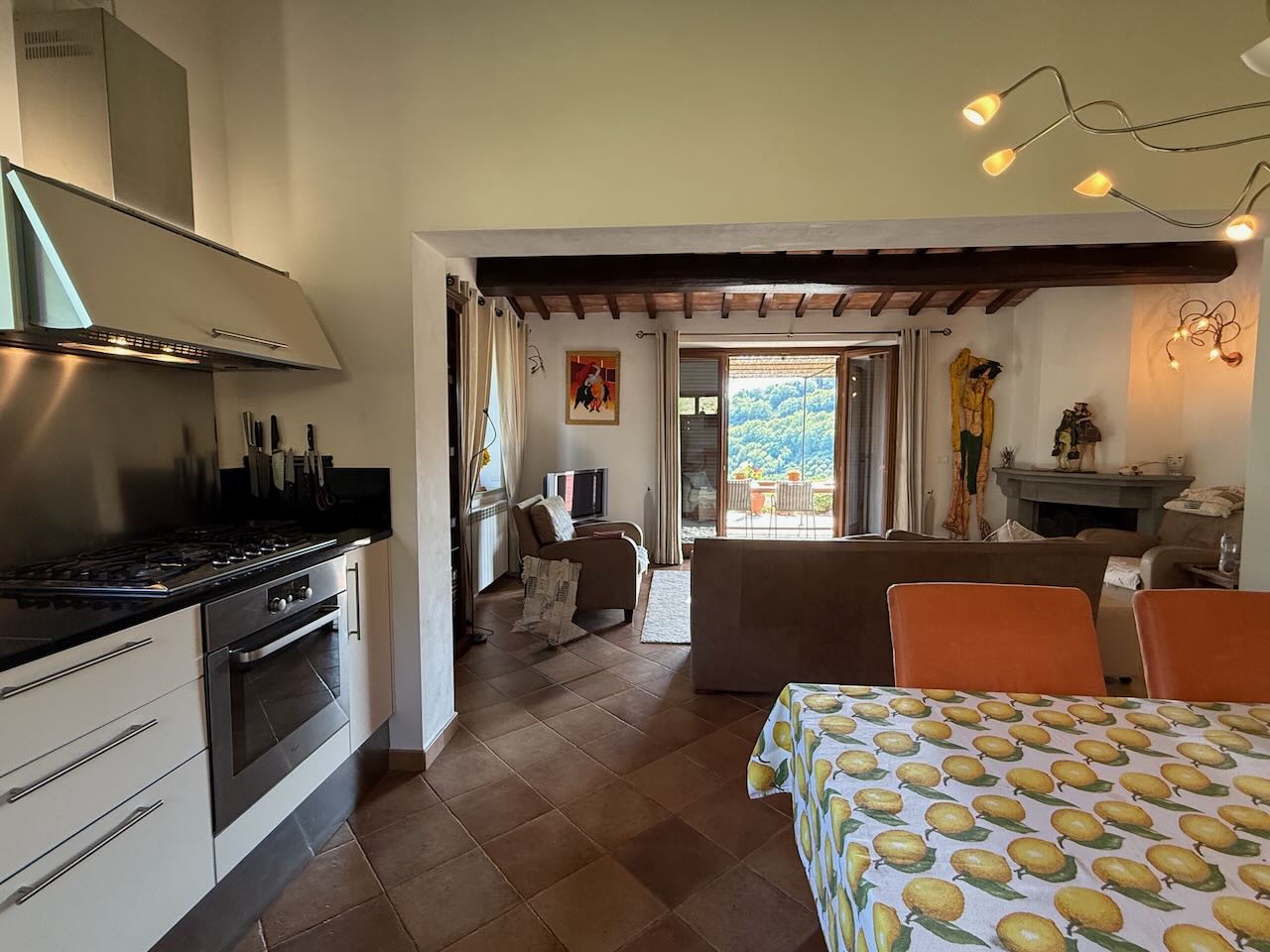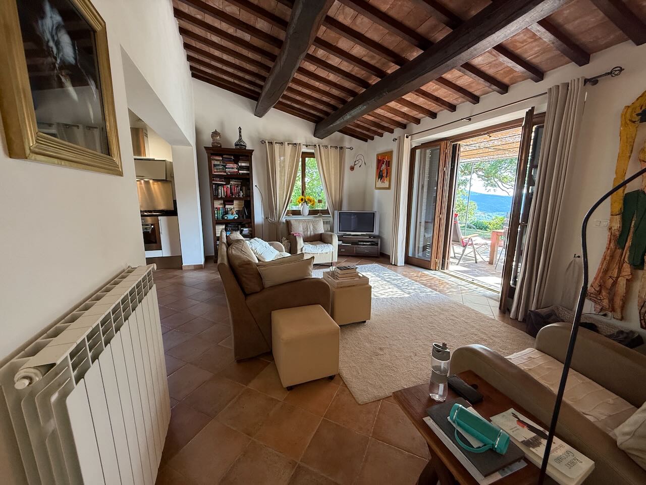 Leuke volledig ingerichte woning op de begane grond, in de heuvels tussen Perugia (20 minuten) en Assisi, met een overweldigend uitzicht op een kasteeltje van meer dan 1000 jaar oud. Het complex met 5 woningen waarin deze woning in Umbrische stijl deel van uit maakt is gebouwd rond 2004, en heeft een gemeenschappelijk zwembad en parkeerplaatsen. Rondom de natuurstenen woning liggen 3 terrassen waar je kan genieten van het schitterende uitzicht, en een tuin met olijfbomen. Binnen is er een ruime open space zitkamer met open haard, een hoog plafond met houten balken, een open keuken en eethoek, en verder een halletje, 2 slaapkamers en 2 badkamers en wat bergingen. Alles is in perfecte staat en volledig uitgerust (ook airco) , je hoeft alleen je koffer mee te nemen! Een ideale plek voor (lange) vakanties, rustig, maar niet geïsoleerd! |