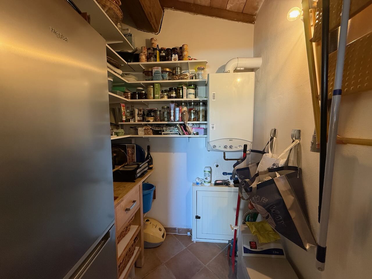 Volledig ingerichte keuken met apparaten, en een bijkeuken met CV ketel en waterontharder. |
